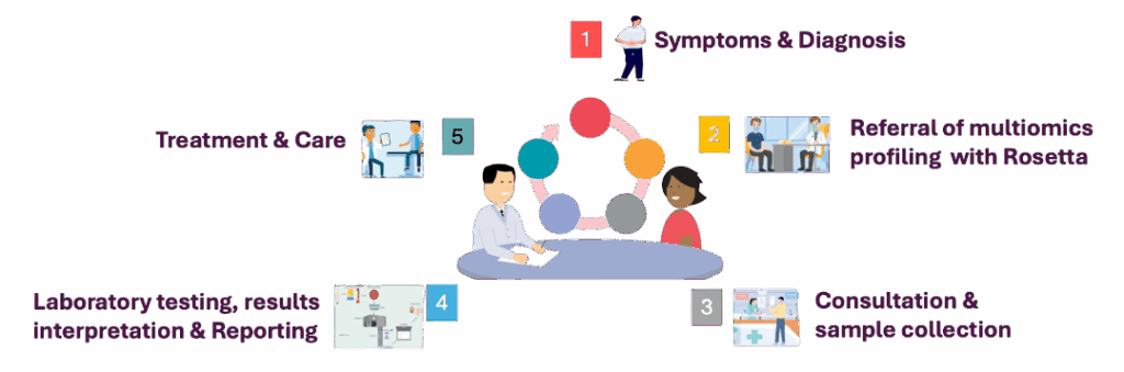 Rosetta Omics platform integrates seamlessly into standard clinical biopsy workflows, enhancing diagnostics and supporting informed decision-making. Beyond clinical applications, our solutions enable the identification of clinically relevant biomarkers and facilitate the discovery of novel therapeutic targets, bridging precision medicine with drug development.